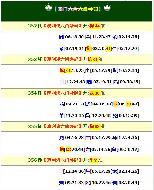 | 352期 黄金八肖〔鼠猴蛇兔狗龙牛马〕开:狗44准 |